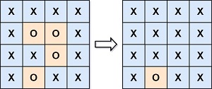 输出:[[“X”,”X”,”X”,”X”],[“X”,”X”,”X”,”X”],[“X”,”X”,”X”,”X”],[“X”,”O”,”X”,”X”]]