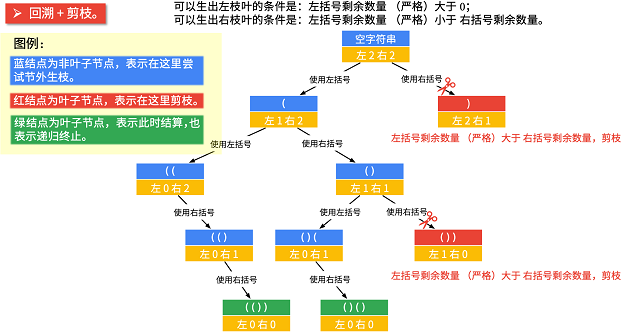 回溯算法本质上就是在一个树形问题上做深度优先遍历,因此此类问题首先需要把问题转换为树形问题,对于树形结构的同一层级中的节点即为结果中某一特定位置(同一位置)上的可能候选节点。与此同时,也一般涉及到剪枝操作,以去除不必要的深度搜索。