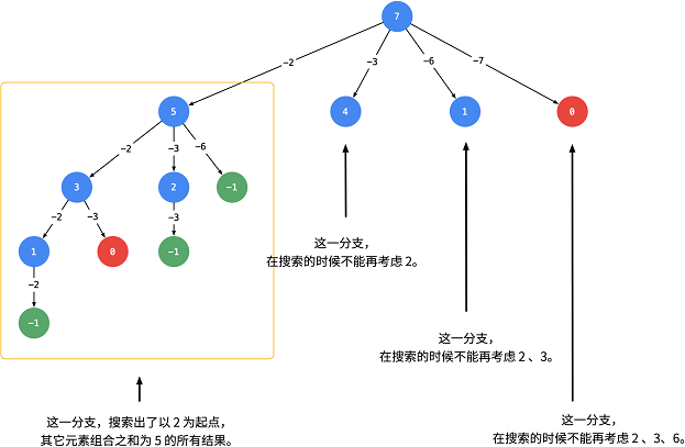 2) 组合问题:顺序无影响( [2, 2, 3] 与 [2, 3, 2] 视为相同列表),需要按照某种顺序来进行搜索,则需要使用 start 变量。