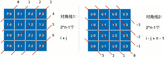 private boolean[] dia2; // 棋盘某一斜线“ \ 方向”上是否有皇后(此方向上一共有 2^n-1 条斜线)
